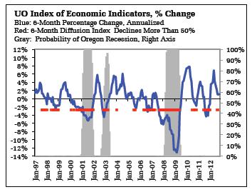 - The two indexes suggest the economic expansion in Oregon continues to remain intact. The same holds for the US economy in the final months of 2013. Notably, the housing market continues to improve; it would be highly unusual for the economy to slip into recession during an upturn in residential construction.